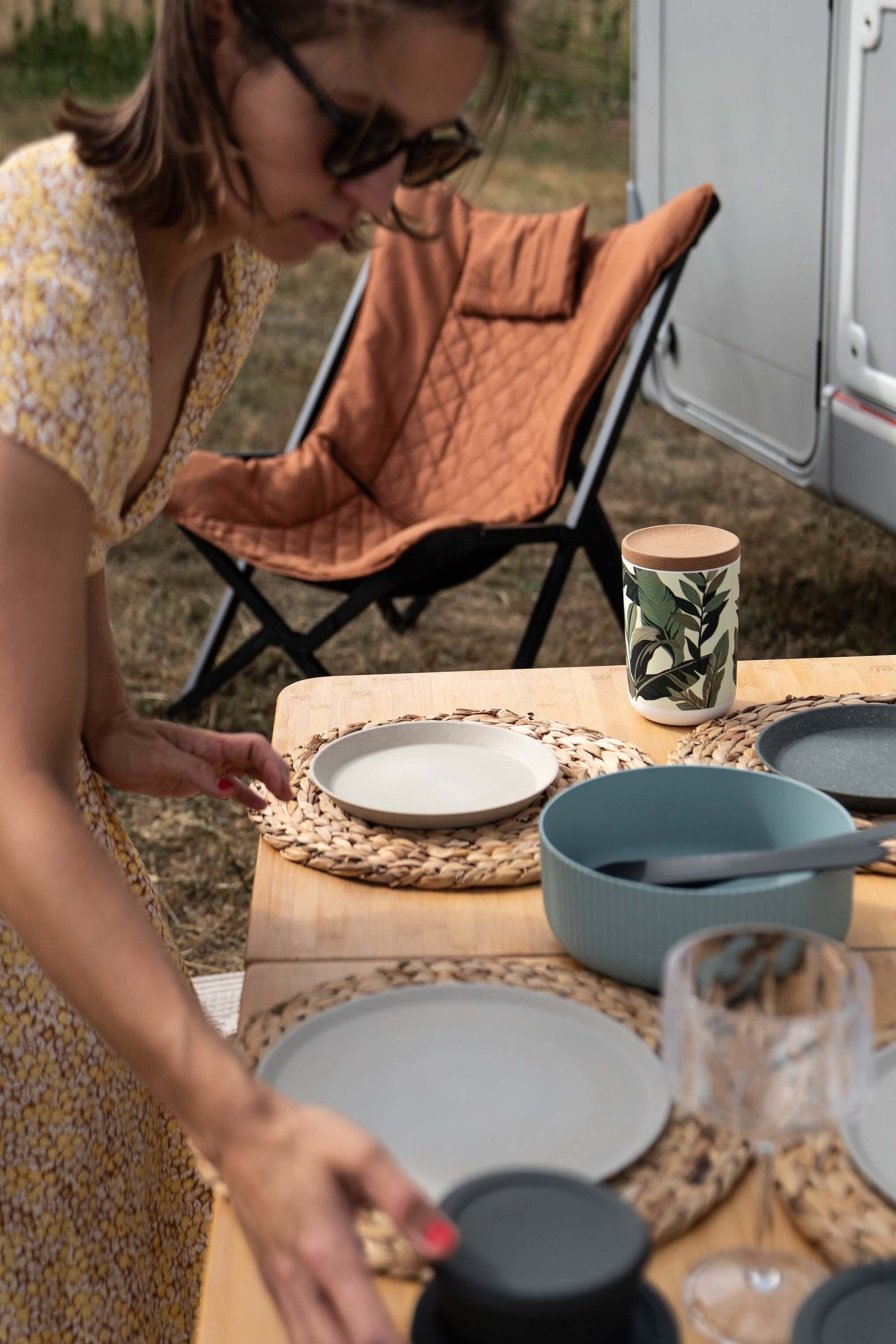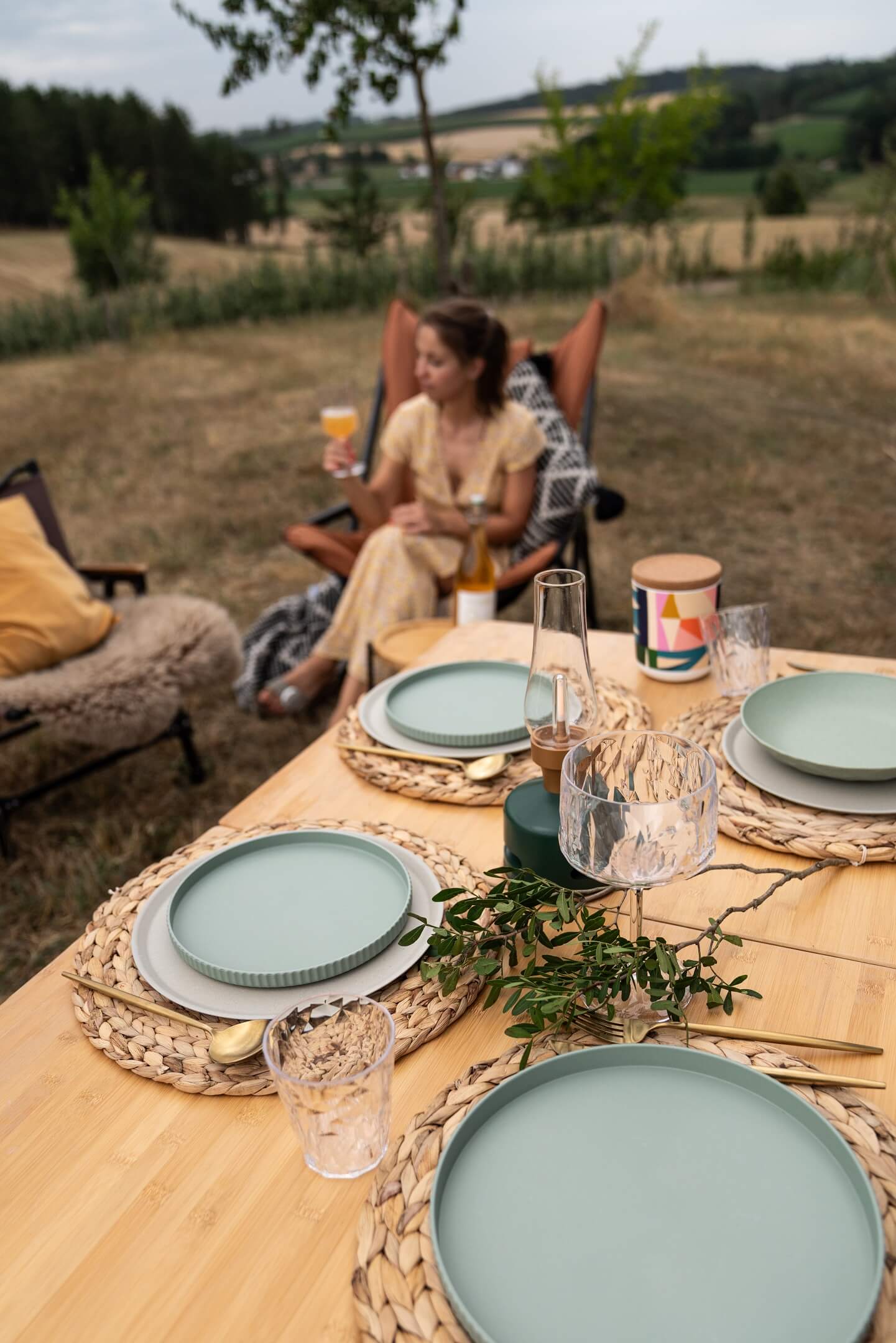 Rebeccas Lieblingsprodukte bei Wildnest Glamping sind die Outdoor Teppiche von Benuta, die Flextrash Campingmülleimer, alle Koziol Gläser und Geschirr und die BOWL Outdoor batteriebetriebenen Pendellampen. Grundsätzlich ist es sehr schwierig fü Rebecca sich nur auf eine Handvoll Produkte zu entscheiden. Denn bei fast jedem Produkt gibt es eine Geschichte dahinter, wieso die hier bei Wildnest Glamping aufgenommen wurden.