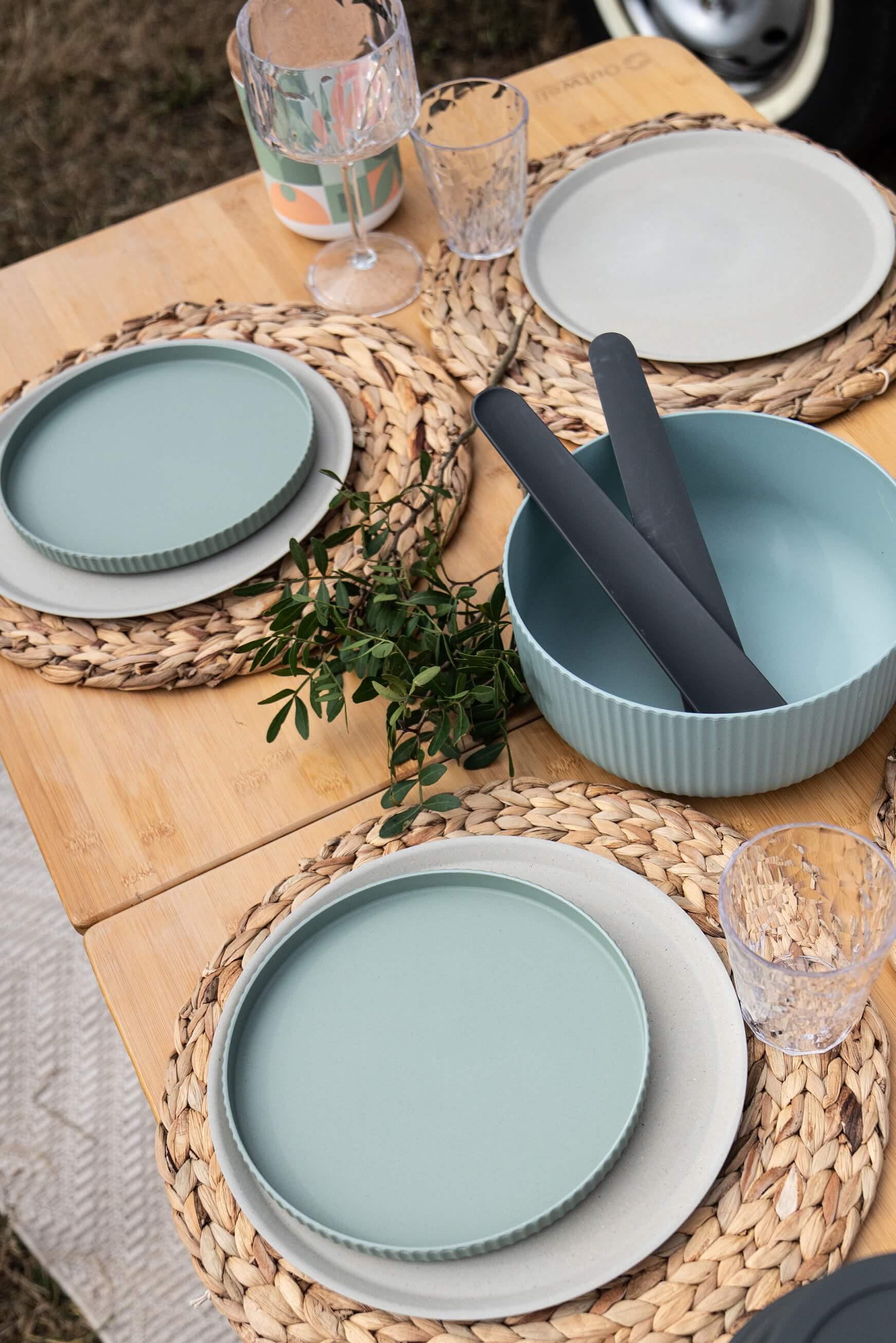 Viele können es vielleicht nicht mehr hören. Aber auch wir versuchen da wo es möglich ist auf nachhaltige Camping Alternativen zu setzen. Deswegen haben wir zum Beispiel Koziol als unseren Hauptlieferanten bei dem Thema Campinggeschirr gewählt. 100% recycelbar, melaminfrei und einfach unbedenklich egal ob ein heißes Steak drauf liegt oder der