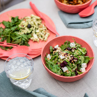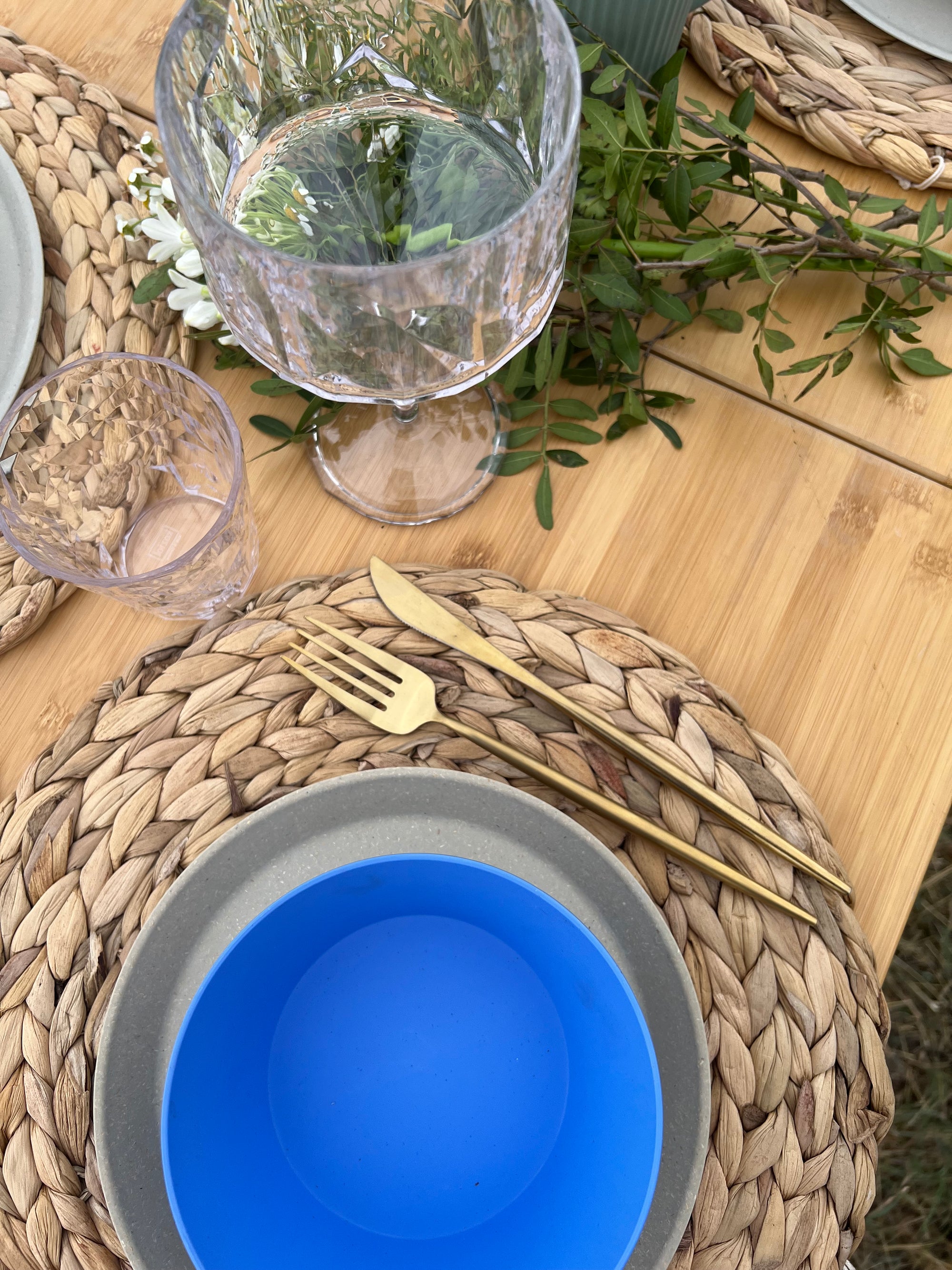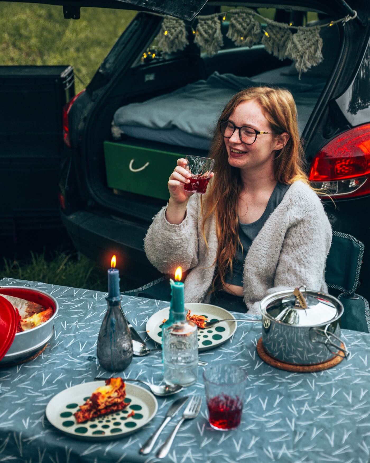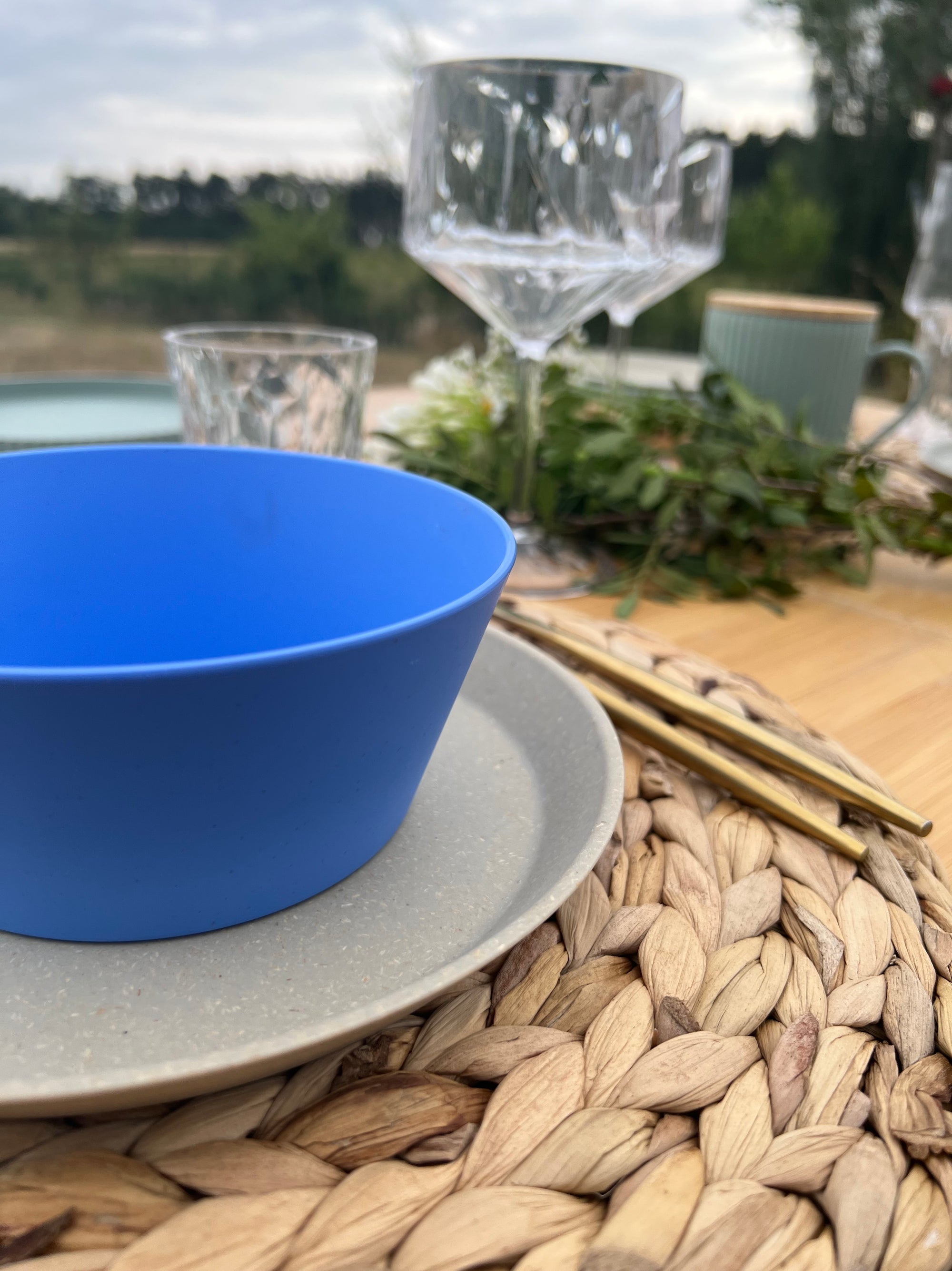Neben den passenden Töpfen und Küchenhelfern sollte zu deinem Campinggeschirr natürlich auch Besteck, Teller sowie Gläser und Becher gehören. Dazu noch eine schöne große Schüssel für den Salat oder andere Beilagen und der Tisch sieht schon fast aus, wie man es auch beim gemeinsamen Essen zu Hause kennt.