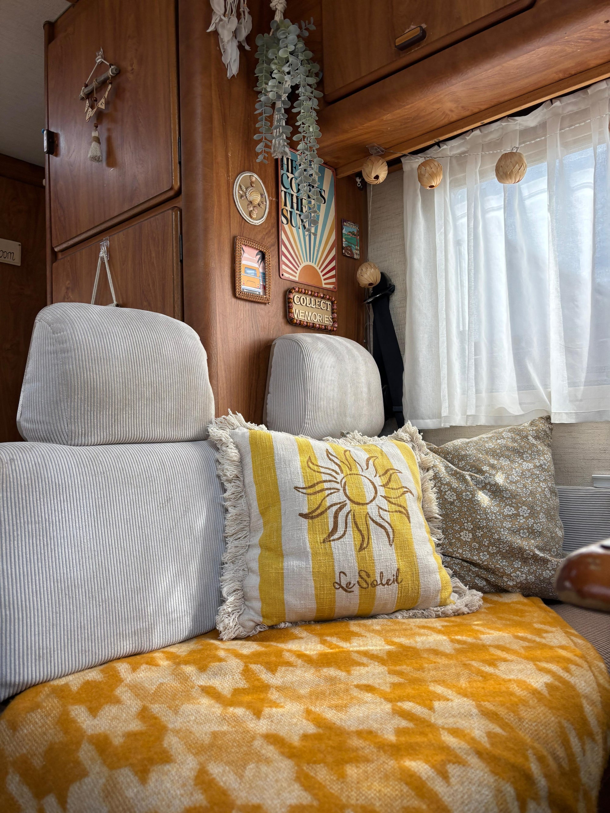 With cushions you can change any living area in no time, be it more elegant, modern or more playful boho style. The mobile homes and caravans often come from the manufacturer with a predetermined design from the standard series. To bring in your own style, cushions can simply be draped on the bench. Modern and geometric prints are very suitable for the purist style. Cushions with fine floral patterns or elegant embroidery are suitable for a lovely touch. Small details and accents can have a big impact in a small camper room.