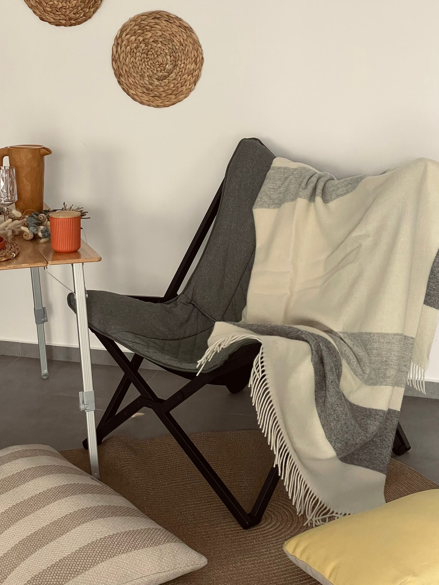 In addition to pillows and other decorations, cozy blankets are also essential for furnishing a camper. Beautiful cozy blankets are timeless and can be used in so many different ways. They can be placed decoratively on the back seat of a camper, laid out as a bedspread in a camping bed, used to provide warmth on cold camping evenings, or even laid out on the lawn or beach as a picnic blanket. Now you just have to decide on the right design - boho, simple, with a pattern, or just a timeless, single-colored one.