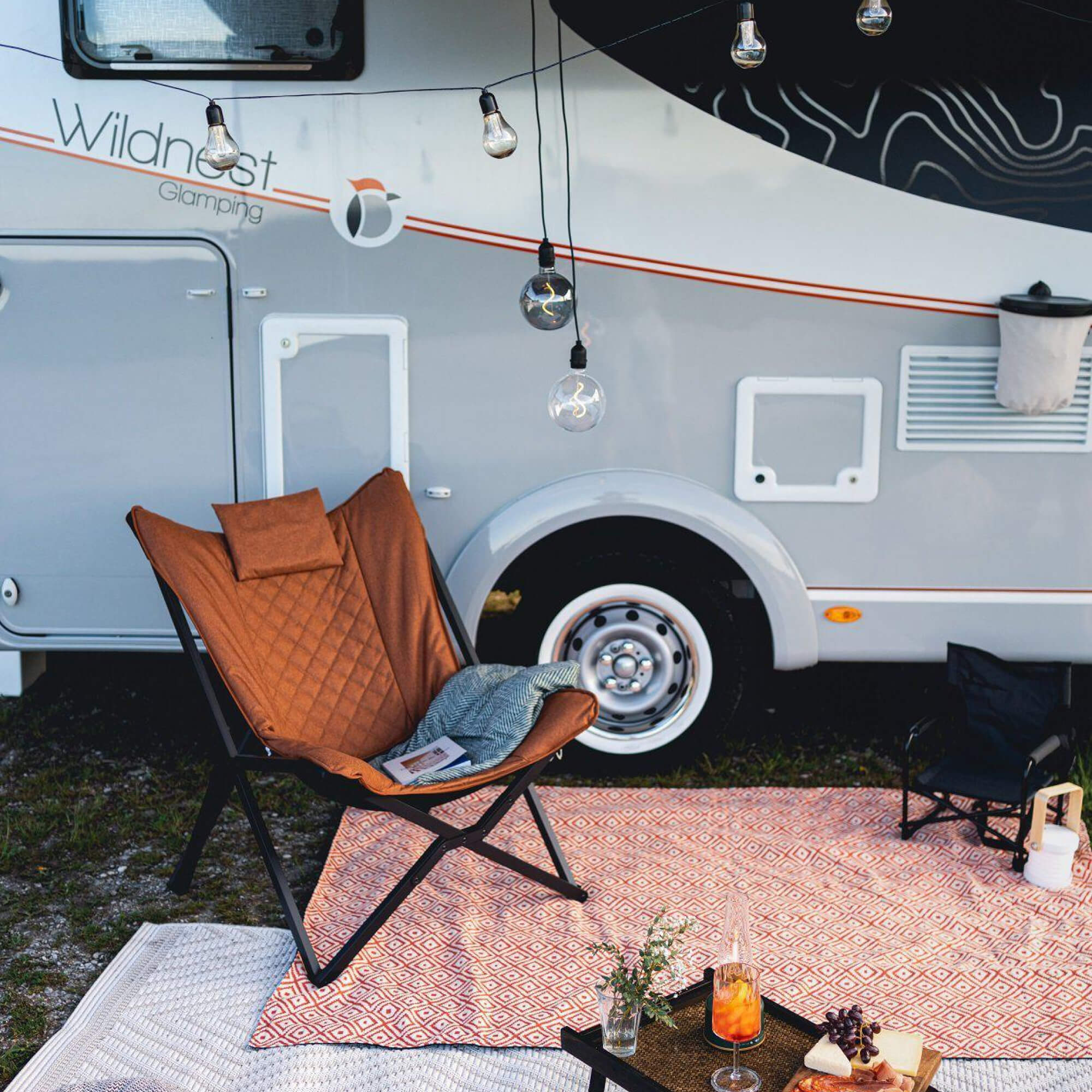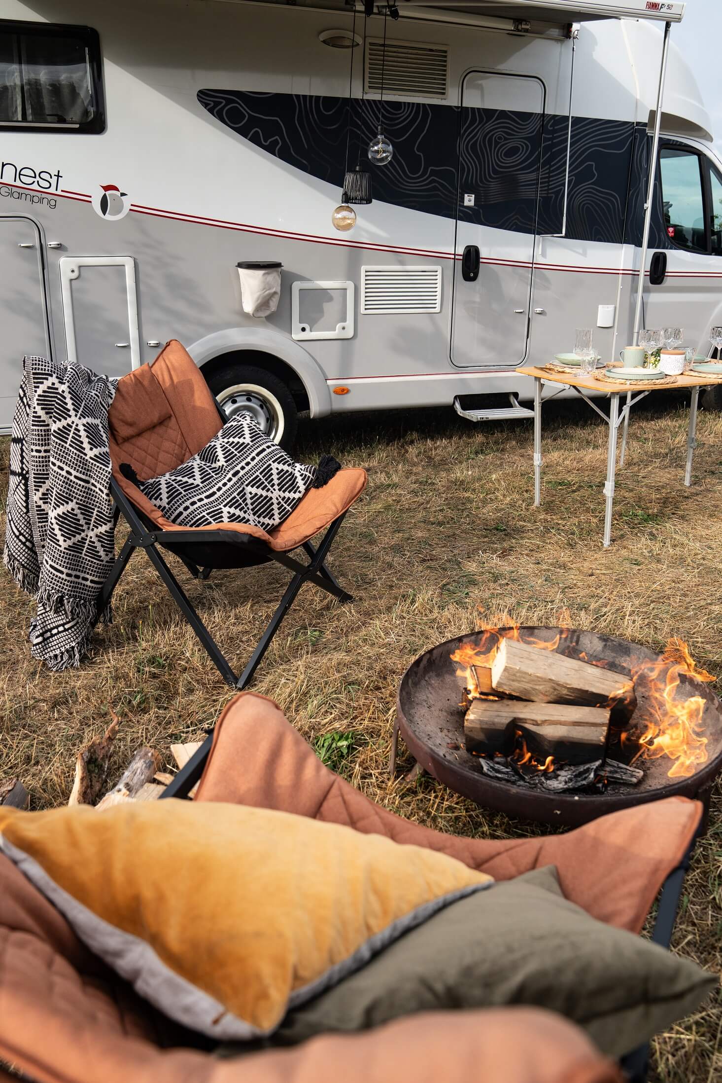 This relaxation chair from the Industrial Molfat series by Bo-Camp shows very nicely that camping chairs can also look modern and chic.