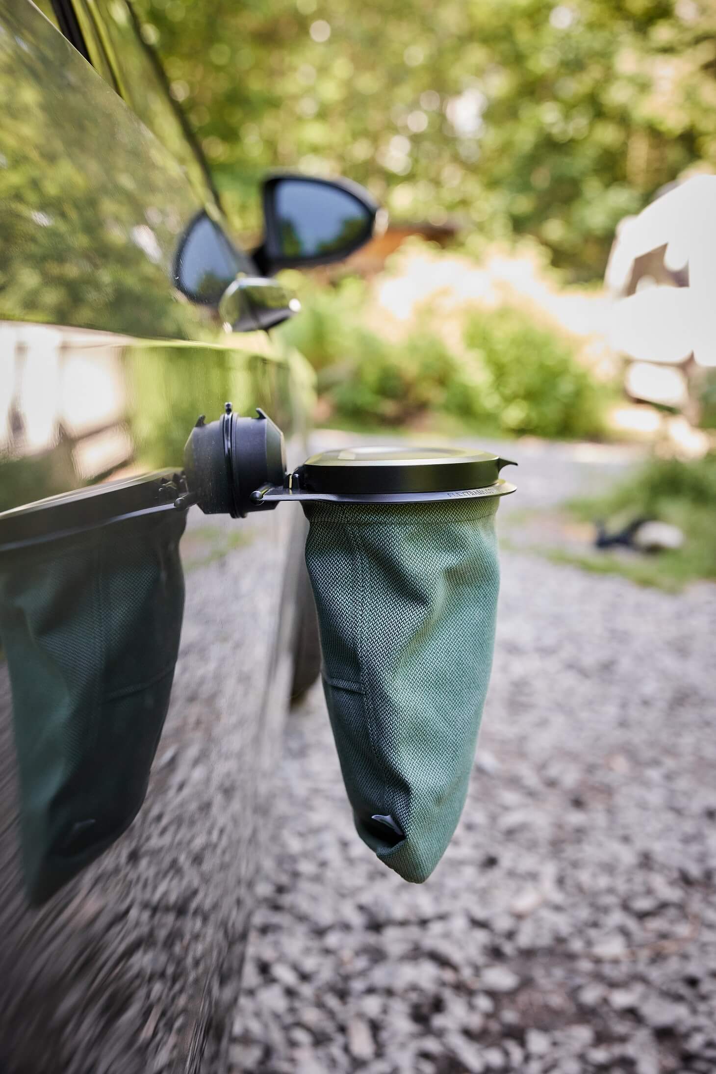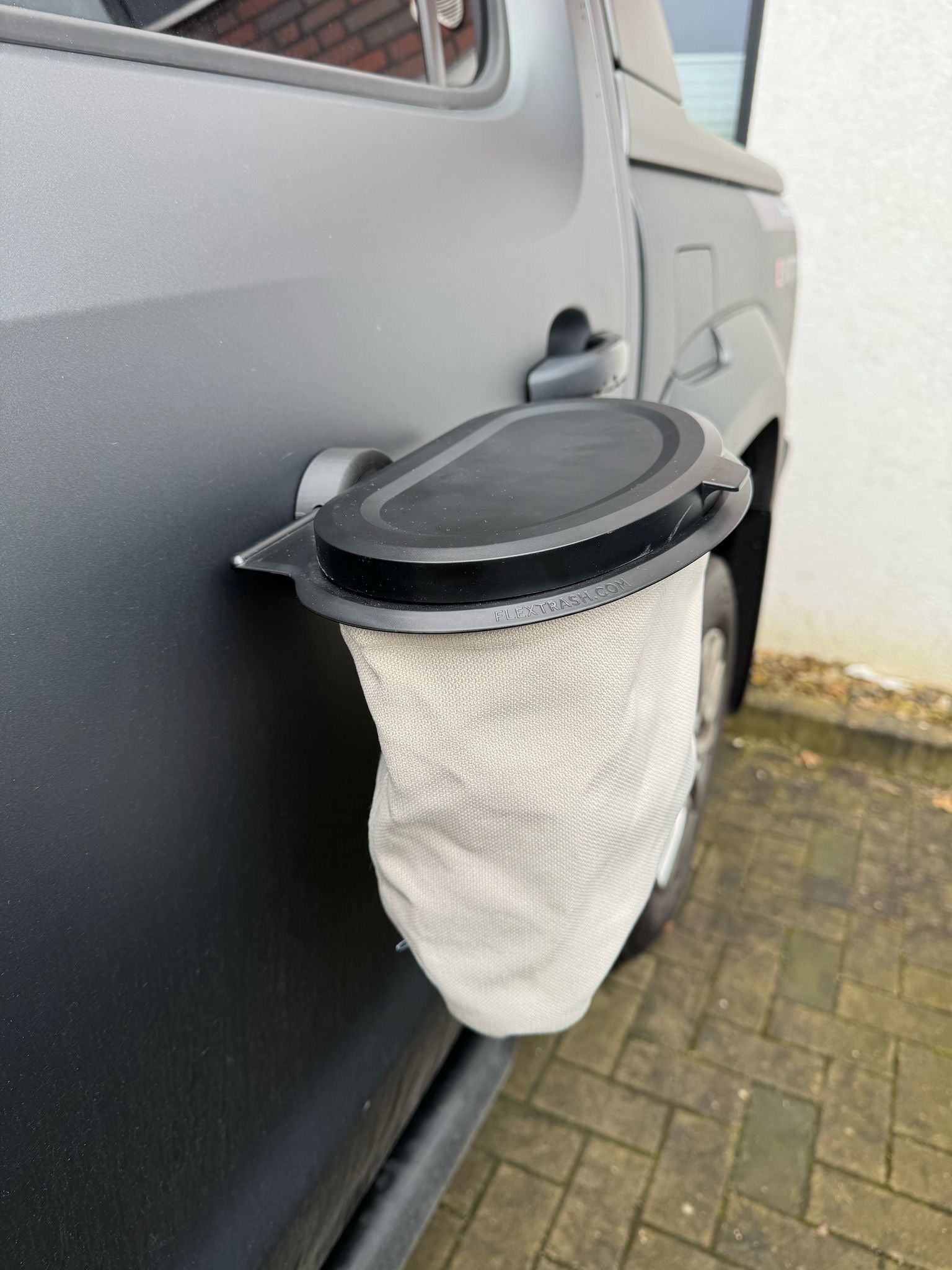 The Flextrash trash can is a sustainable companion for mobile homes and campers. Made from 100% recycled PET. With the different color selection, you can pay attention to waste separation even when camping. A yellow Flextrash for plastic waste and a green one for organic waste. To prevent the smells from spreading in the camper, the camping trash cans can be easily attached to the outside of the camper with either a Campstick or a VacuClip.