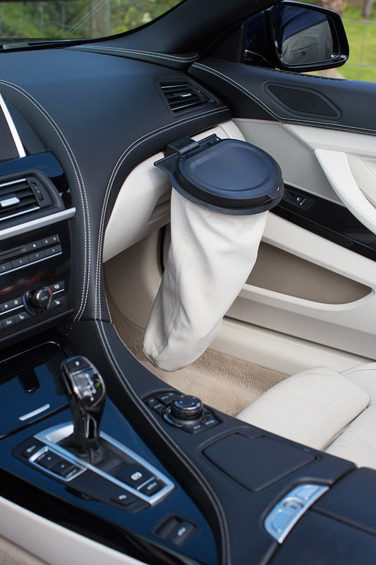 - Flextrash Flipclip (behind the driver's seat on the metal supports of the headrest)