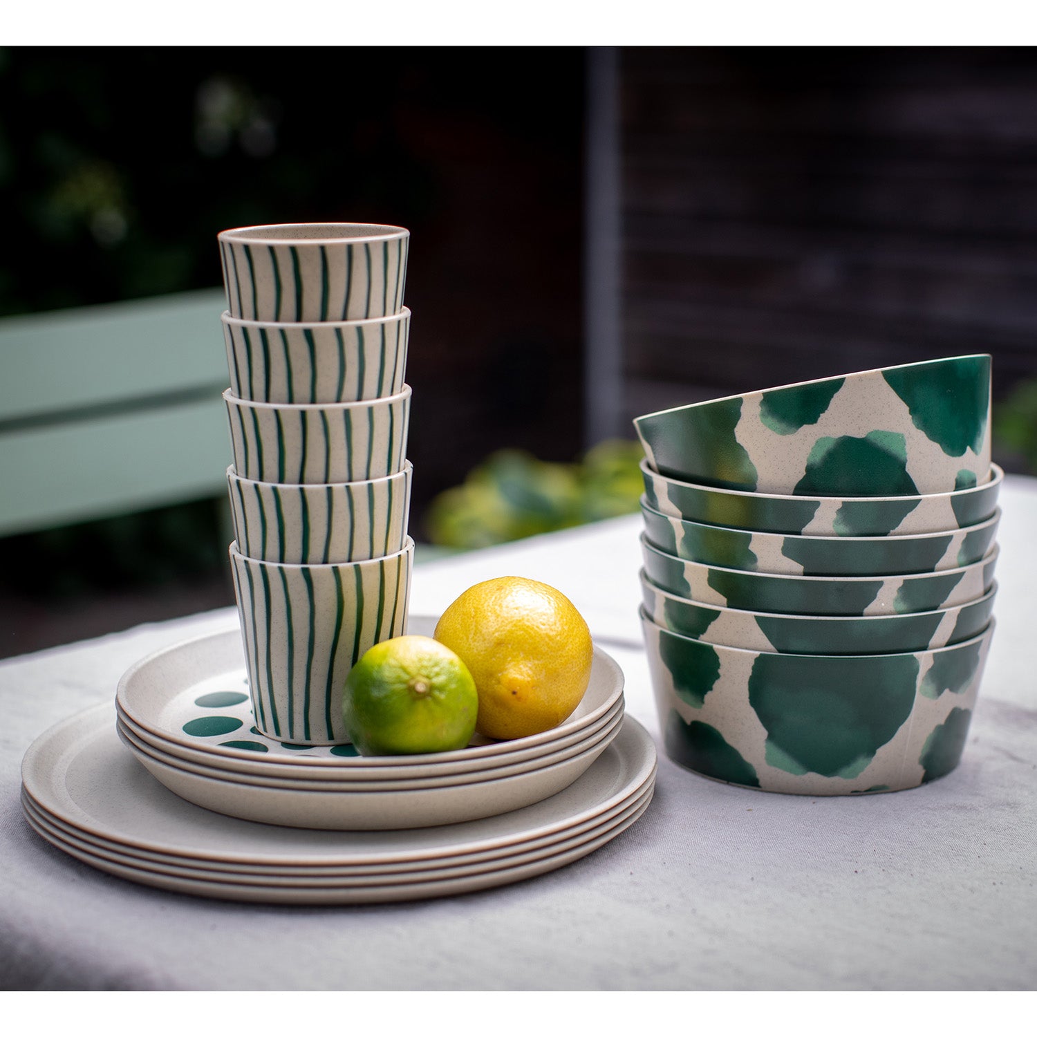 The great thing about the Connect series is that the plates and bowls are designed to match each other and there are also several colors to choose from. The Connect plate with the MONSTERA DOTS pattern stands out from the classic single-colored camping plates and brings a fresh touch to the camping table. This means that camping dishes no longer have to be single-colored, but can be color-coordinated and combined according to style, trend and season.