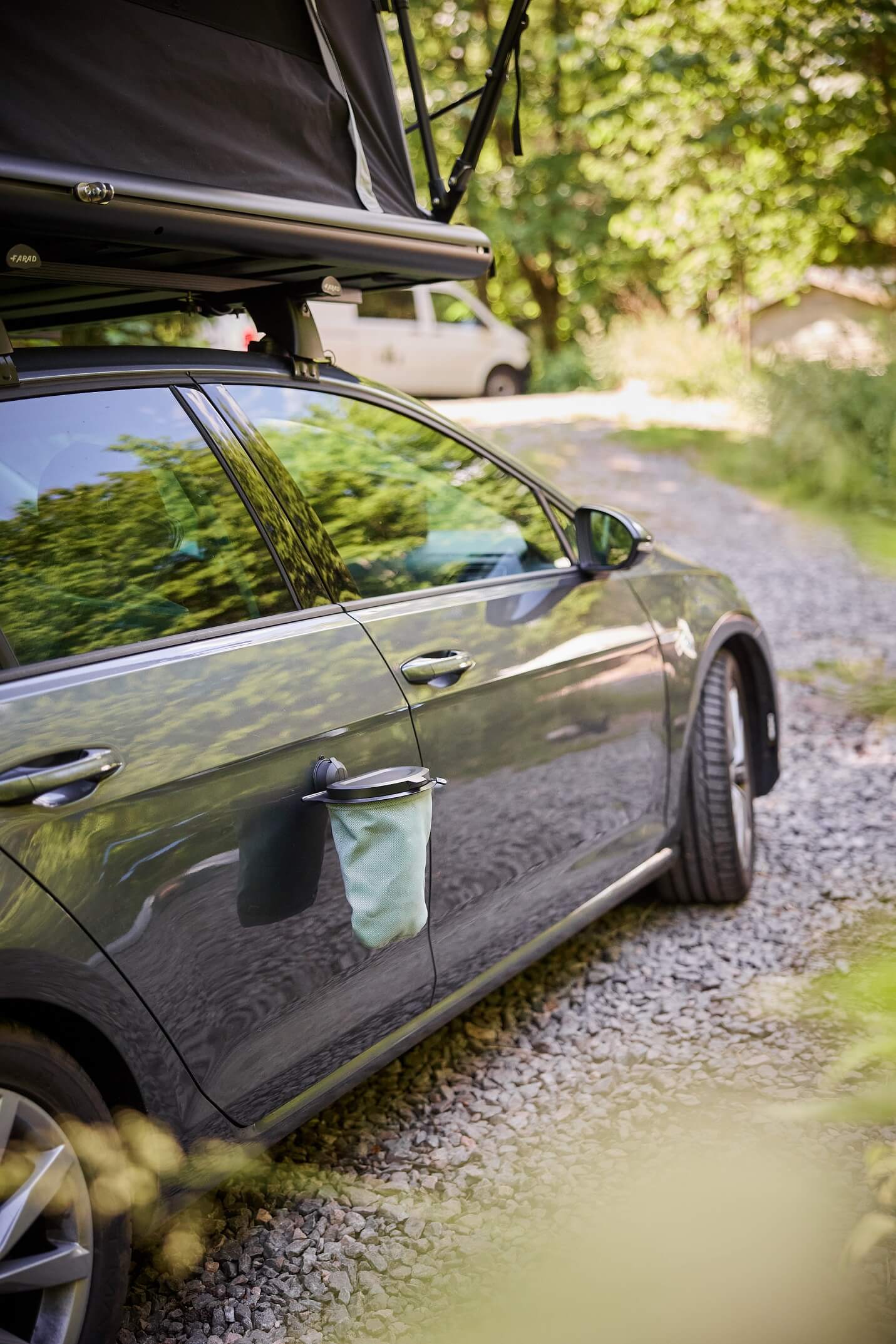 Mit seinen sechs innovativen Befestigungssystemen kannst du den Flextrash Mülleimer mühelos an verschiedenen Orten befestigen. Ob an der Außenseite von deinem Campervan, Spiegel, an der Tischplatte oder an anderen praktischen Stellen – er bleibt immer an seinem Platz und ist leicht erreichbar.