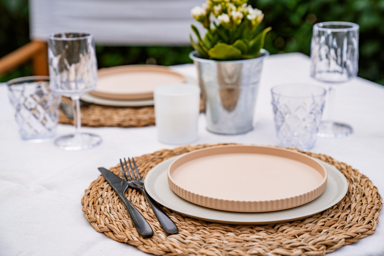 Wer auf der Suche nach extravaganten Tellern für die Campingausstattung ist, ist bei den Deluxe großen Tellern mit Ø25cm von bioloco genau richtig. Sie sind nicht nur im Design eine runde Sache, sondern auch im Thema Nachhaltigkeit ganz vorne dabei. Die kleinen Teller bestehen aus einem pflanzenbasierten Material PLA. PLA wird aus Pflanzenzucker wie zum Beispiel aus Maisstärke, Maniok oder Zuckerrohr gewonnen. Die Produktreihe ist Melamin- und BPA-frei. Somit eignen sich die Campingteller perfekt für jeden Glamper der auch auf Design und Optik setzt.